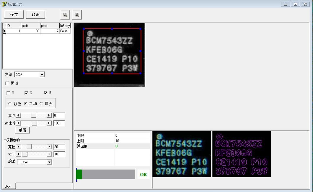 6.自動絲印對比功能:對于芯片、二極管及絲印電阻等器件,系統(tǒng)有全新的視覺判定功能可自動判斷元件的絲印及角度是否正確。