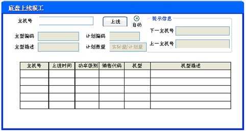 如:31000001(三裝+2010年+00001主機序號),主機號產(chǎn)生后,即產(chǎn)生主機上線預備隊列,數(shù)據(jù)保存到分裝線生產(chǎn)表