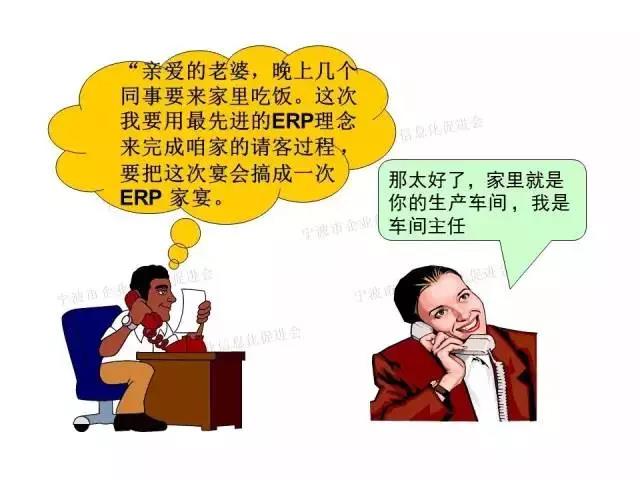 ERP: 一天中午,丈夫在外給家里打電話:“親愛的老婆,晚上想帶幾個同事回家吃飯可以嗎?”(訂貨意向)