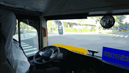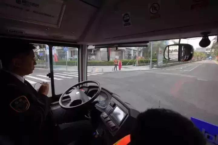 沒有駕駛員,公交車方向盤自己隨彎而轉,遇到交通燈和行人會自動剎車,到了公交站自動變道停靠...