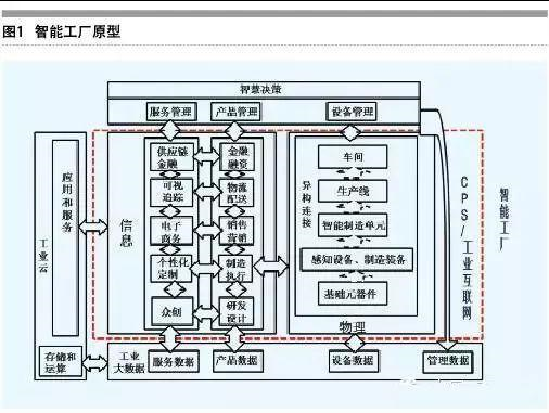 企業基于CPS和工業互聯網構建的智能工廠原型,主要包括物理層、信息層、大數據層、工業云層、決策層。其中,物理層包含工廠內不同層級的硬件設備,從小的嵌入設備和基礎元器件開始,到感知設備、制造設備、制造單元和生產線,相互間均實現互聯互通。以此為基礎,構建了一個“可測可控、可產可管”的縱向集成環境。信息層涵蓋企業經營業務各個環節,包含研發設計、生產制造、營銷服務、物流配送等各類經營管理活動,以及由此產生的眾創、個性化定制、電子商務、可視追蹤等相關業務。在此基礎上,形成了企業內部價值鏈的橫向集成環境,實現數據和信息的流通和交換。