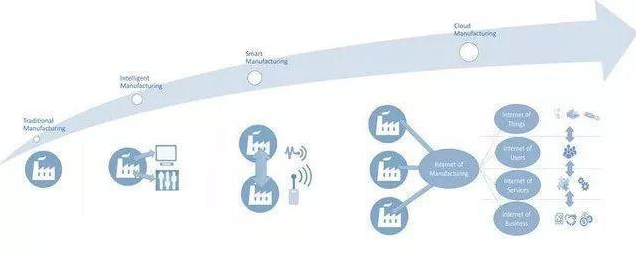 圖片展示了云制造的概念,以及從傳統制造,到智能制造,到智慧制造,到今天的云制造的過程。
